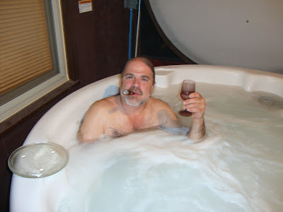 I poured myself a full glass of imported Italian Moscato wine, lit up a Fuente Rothchild stogie and relaxed in the hot tub! Mark joined me on the screened-in back porch and smoked his corncob pipe filled with black cherry tobacco. He sat in one of the chairs and we carried on with good conversation while the others stayed inside drinking micro-brews and carrying on as fishermen do…
