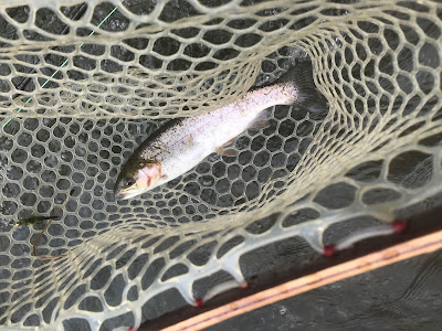 My third cast, with a yellow bugger, yielded a quick strike and healthy rainbow came to the net. It would take another 10 minutes or so for my next strike.